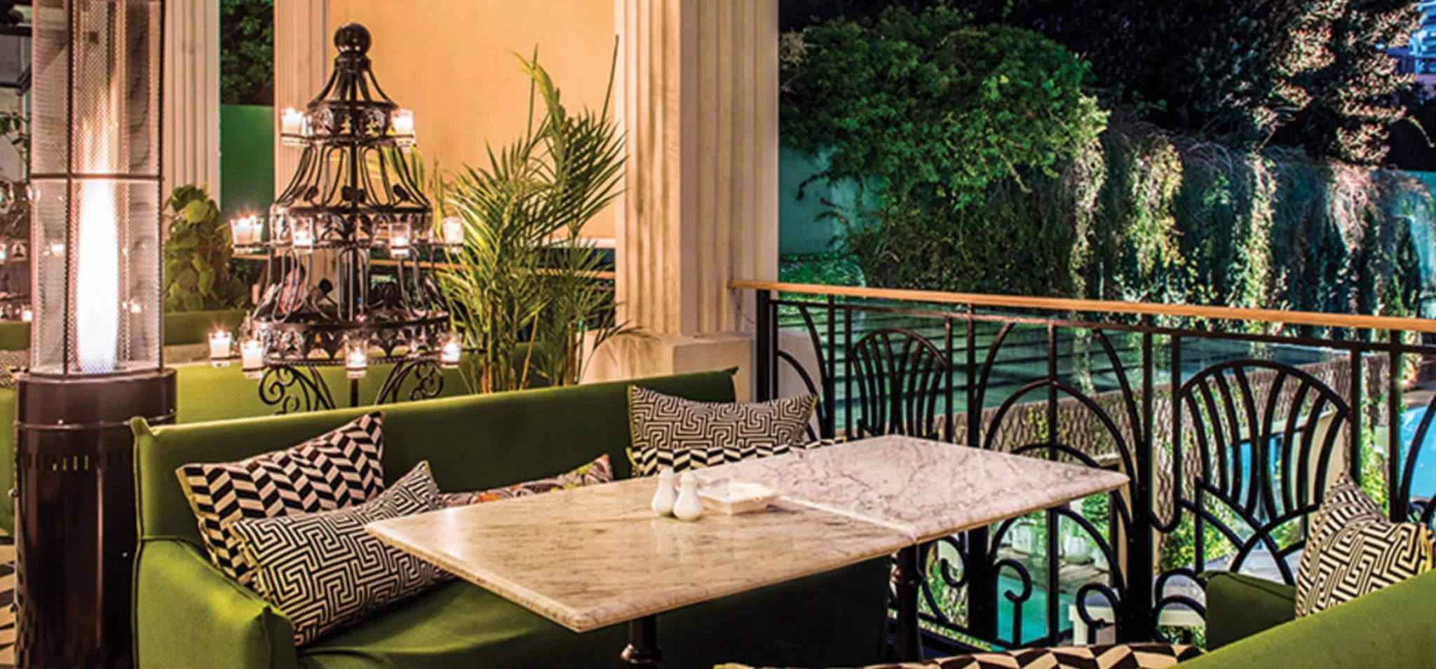 dine alfresco in a fragrant palm oasis
